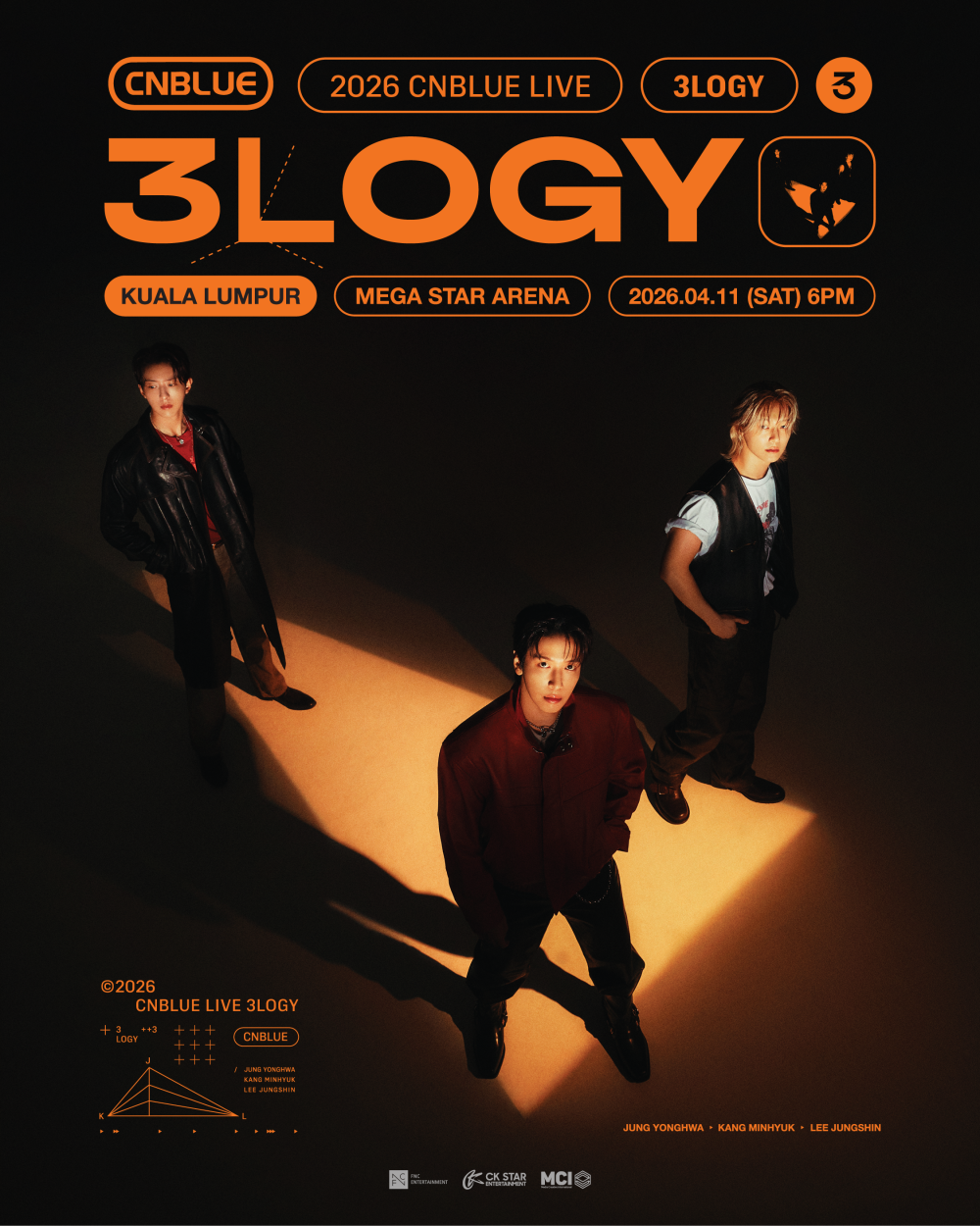 巡演名称 ‘3LOGY’ 象征三位成员的完美协同与音乐和谐。本次演出将融合摇滚、抒情及流行元素,呈现经典曲目与新作演绎的双重体验。自 2010 年出道以来,CNBLUE 以郑容和深情的主唱与吉他才华、姜敏赫充满个人特色的鼓点节奏、李正信稳健的贝斯和和声,打造出多首热门曲目,包括《Loner》、《Can’t Stop》、《Love》、《I’m Sorry》等,并以精彩的现场演出展现强大实力,赢得粉丝喜爱。