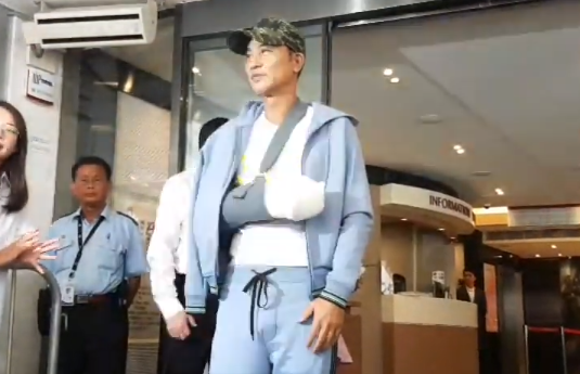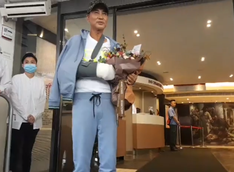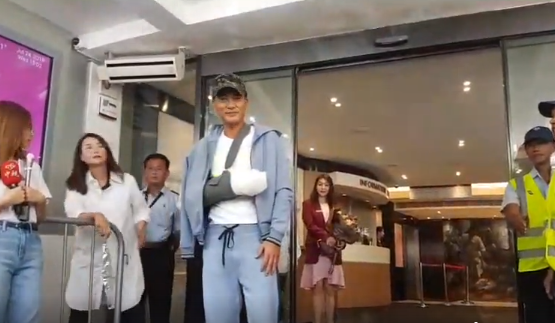 他表示,现在手需要时间去康复,因为伤及神经线,希望可以尽快康复之后,可以继续拍戏,因为我好钟意拍戏。他也不忘感谢家人和女儿,之后便在工作人员陪同下上车离开。