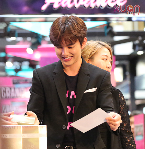 身穿黑色正装外套的他,不时对粉丝展现微笑,现场更是尖叫连连, 而签名环节的时候,现场还有各种花式告白, 除了一直都在喊的 "saranghaeyo oppa"(欧巴我爱你), 其中有位女粉丝更是大声说,欧巴 我们结婚吧,引起大家的尖叫,直喊不能。当粉丝问起俞承豪有没有女朋友的时候,他笑笑地摇头说没有,现场粉丝都激动了啦!