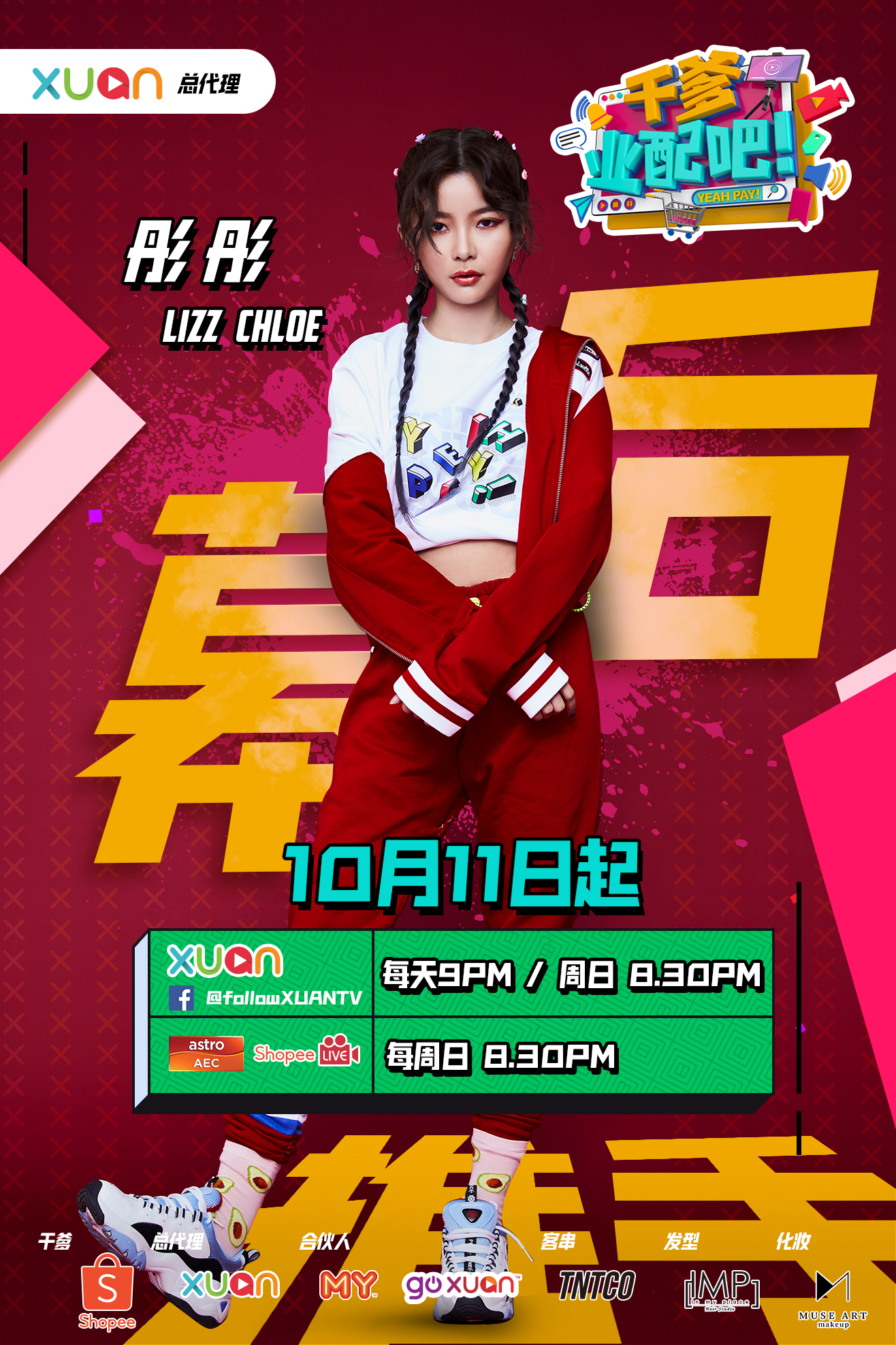 《干爹业配吧!》10月11日起,每天晚上9点、周日晚上8点30分,XUAN TV Facebook播出;Astro AEC、Shopee LIVE 每周日晚上8点30分播出。
