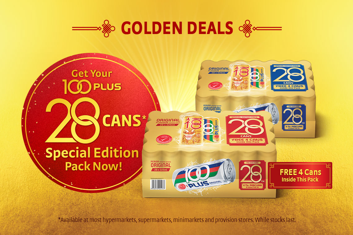 另外,100PLUS在新年期间推出了特别促销,原本一箱只有24罐,如今随佳节额外附送4罐,也就是说,您可以用相同的价钱,把28罐100PLUS买回家!