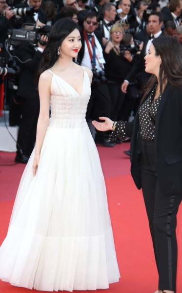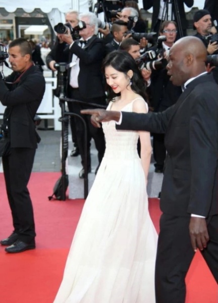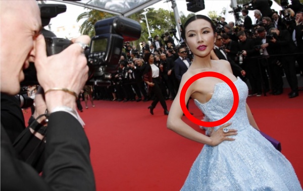 除了景甜之外,港媒报道16日的戛纳红毯上,还出现了一位中国大妈,瞧她这一叉腰,右侧熊的Nude Bra都露出来见客了,相当大方。