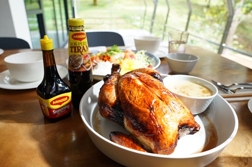 Maggi 是伴随我们长大的品牌,时刻与我们的日常温饱紧密联系。 在 《新春食堂之女力典范》中出现过一道搭配蒜味柚子酱的慢烤脆皮鸡,就能看见 Maggi 鲜味汁和蚝油的身影,扮演着重要的调味角色。