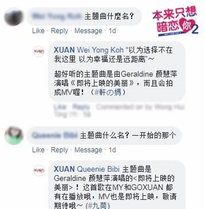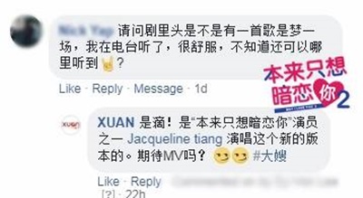 除了主题曲询问度极高,还有我们的插曲/片尾曲!第一、第二集的片尾曲是饰演邢楠的Ruby 狄妃演唱《说歌》,第三集的片尾曲是由饰演林美仪的Jacqueline 程玲唱改编版的《一场游戏一场梦》,是她首支单曲,2首插曲/片尾曲都会拍成MV,几时播出?好的东西需要时间~等一等呗!