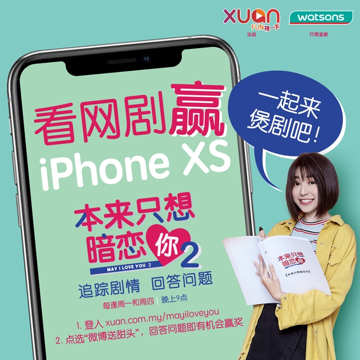 由XUAN出品的《本来只想暗恋你2》播出后受网友的好评,谢谢你在星期一跟星期四晚上9时准时收看及给我们的留言大力支持!为了回馈粉丝的支持,记得到 https://goo.gl/g8EV2X 回答简单问题,这样就有机会赢走由微博送出的 iPhone XS 呢!是滴~你没看错!