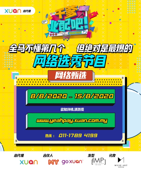 《干爹业配吧!》即日起至8月15日接受报名,详情 www.yeahpay.xuan.com.my 或拨电011-17894199。
