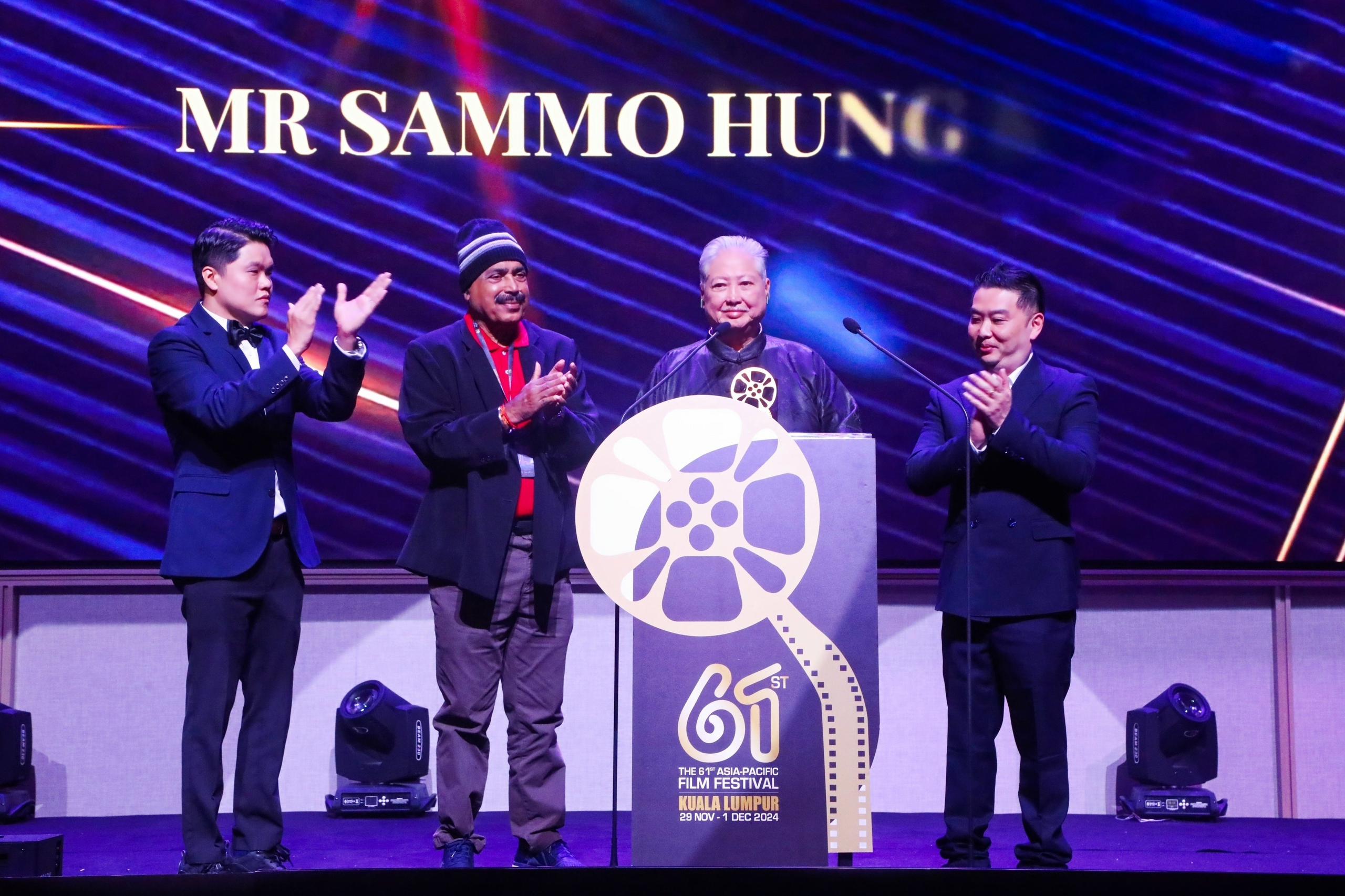 本届亚太影展颁终身成就奖给动作巨星洪金宝,他亦亲自出席颁奖典礼领奖。洪金宝在接过奖项时表示,电影人拍戏一拍就几个月,冬天拍夏天戏、夏天拍冬天戏,但是这份专注和执着却令他十分着迷以及爱上电影:“拍电影令我爱上每一天,从不觉得是辛苦,是享受。”他感叹道:“现在是有点辛苦,因为少了开工,是会失落一些的。”眼看神采飞扬的他续说道:“我很欣慰,很感恩,因为我觉得自己是一个很幸运的人,自己的梦想,成为一生中的职业,没想到这样有奖拿,虽然现在的电影不是黄金时代,我希望爱电影的年轻人,一定要努力不要放弃,我也祝你们有梦想成真,多谢大家!”并再次感激大会颁发该奖项予他。