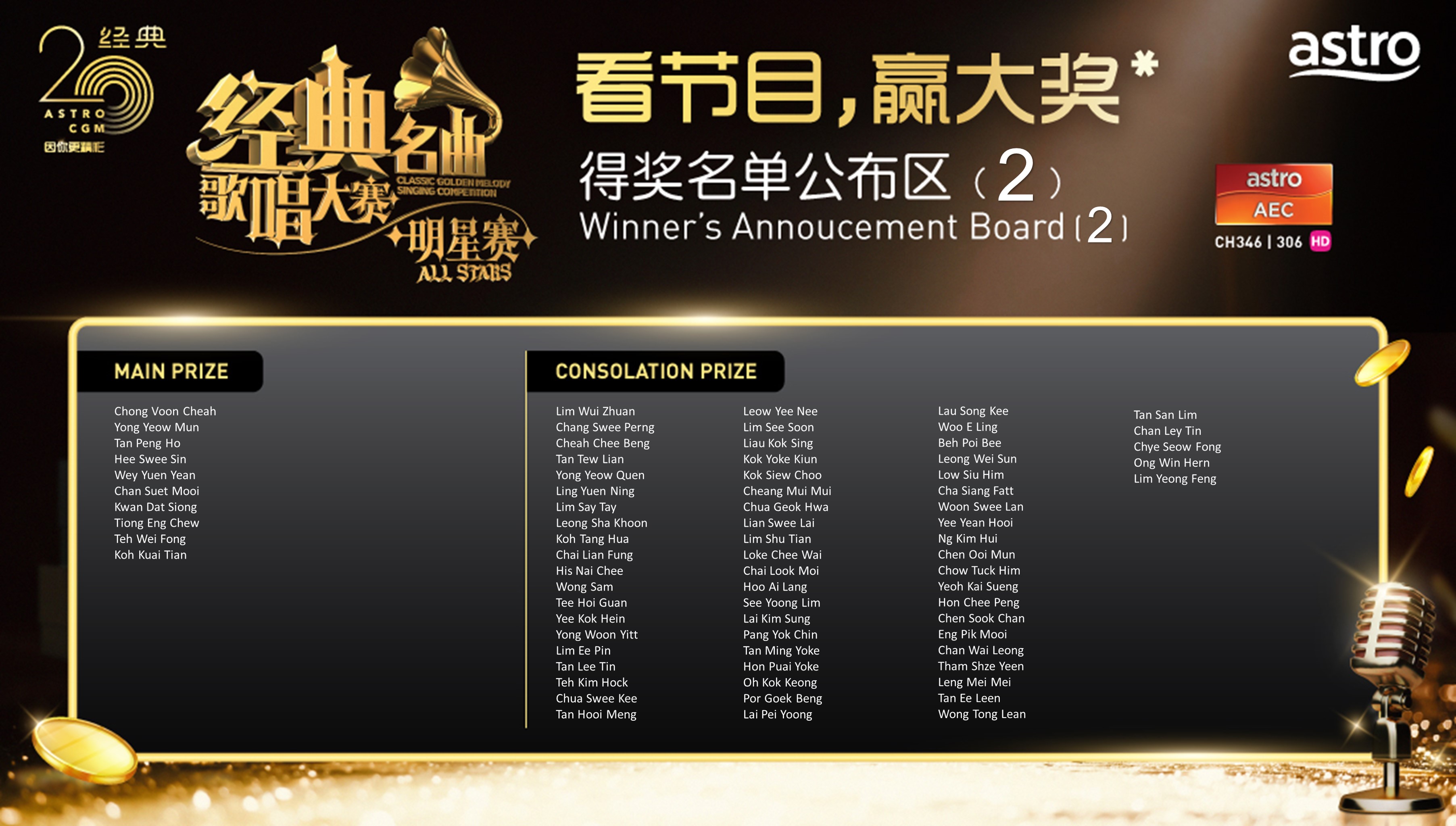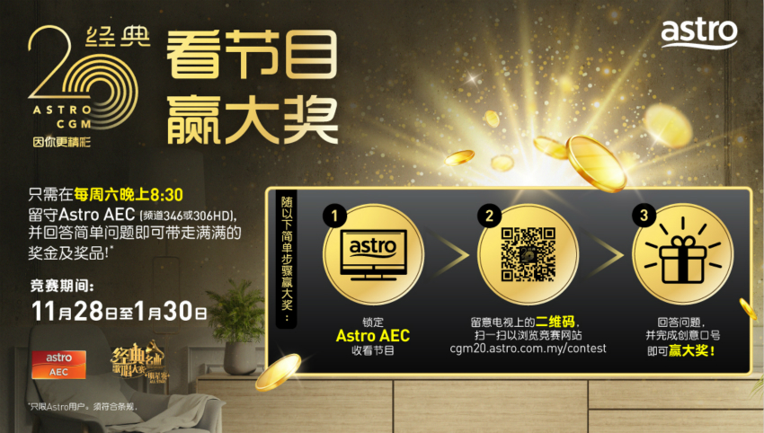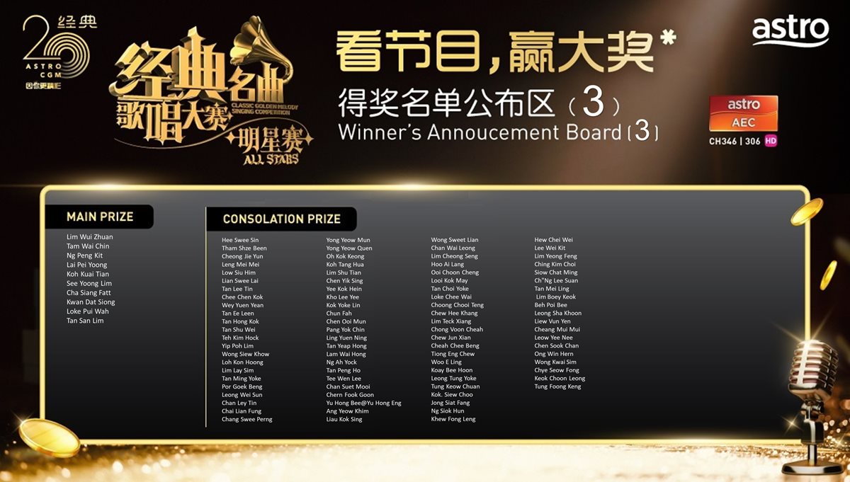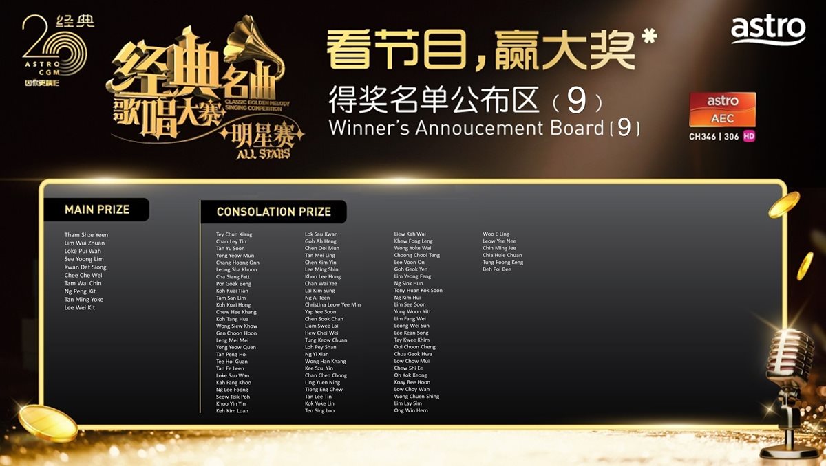 2 每周准时晚上8点30分,于Astro AEC(346)和AEC HD(306)收看《Astro经典名曲歌唱大赛 – 明星赛》