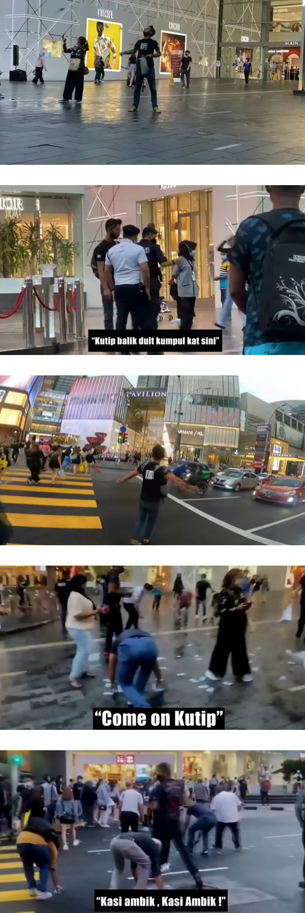这位网红就转战到附近的繁忙地段,在车水马龙的路上开始撒钱同时高呼,“Kasi ambil! kasi ambil! Kutip kutip kutip”要周边的路人上前捡钱。结果,路上的途人纷纷在马路地上捡钱,引起一阵骚乱。