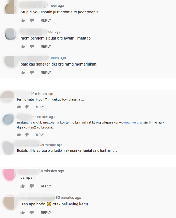 视频流传后,网友纷纷留言狠批,“垃圾”、“愚蠢的内容”、“把公众人当做是乞丐吗?”等。
