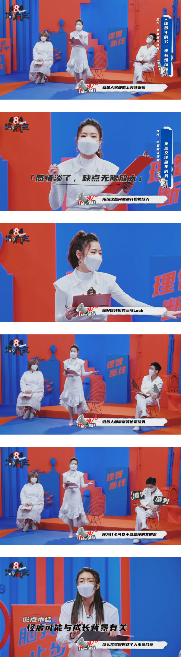 她也在场提到了如果对方是有收集腋毛、变装癖等怪癖,或许是心里上存在着一定的问题。因此她认为:“若坦诚跟我述说事情的经过,两人才有办法一起解决问题,一起厮守终身。”