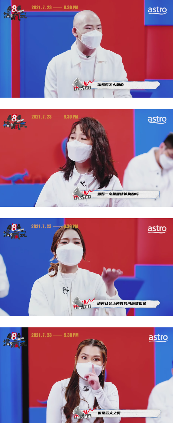 斌友一出场则直接呛声对手:“你完全没有要在意你妈妈是怎样想的” ,遭到小桃反击“那你又知道妈妈一定是想要精神奖励?”