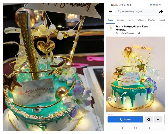 该名女歌手Joey在留言处强调Sabah并没有MCO,所以自己没错,但之后又解释说这组照片并不是今年拍摄,而是丢回庆生旧照。但有网友寻找到蛋糕店曾在2日前才上传了一模一样的蛋糕照片,打脸该名女歌手的“旧照”一说。