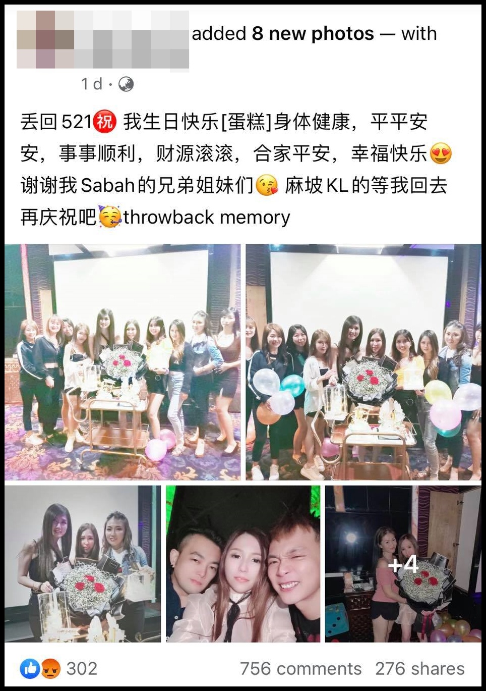 该组庆生照片立刻引起网友评论,直批该名女歌手在全国MCO期间竟然不遵守SOP,不体谅前线人员的辛苦,在留言处标签PDRM,希望警方关注此事。