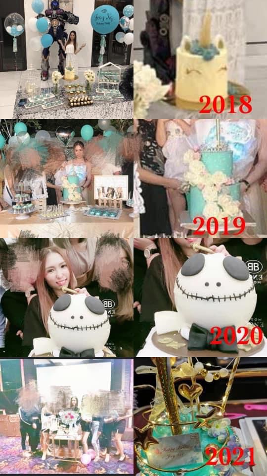 有网友甚至找回该名女歌手近几年来庆生的照片和蛋糕对比来证实该组照片是在今年庆生所拍摄的。