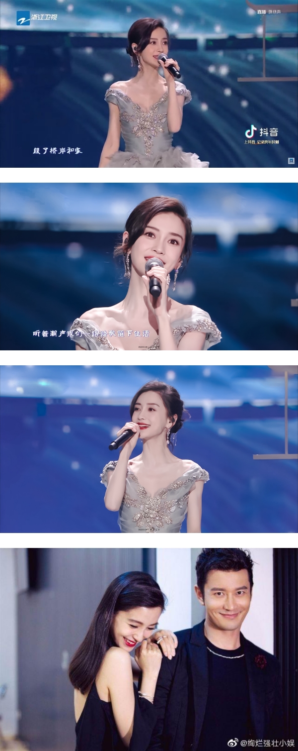 在2021年的最后一天,Angelababy以一身露肩银灰色礼服登场,献唱了歌曲《十万人家》。她的歌声相当甜美,加上芭蕾舞的衬托,为观众带来了一场视觉的盛宴,纷纷盛赞她是穿越千年的仙女,对她的美貌有赞无弹。
