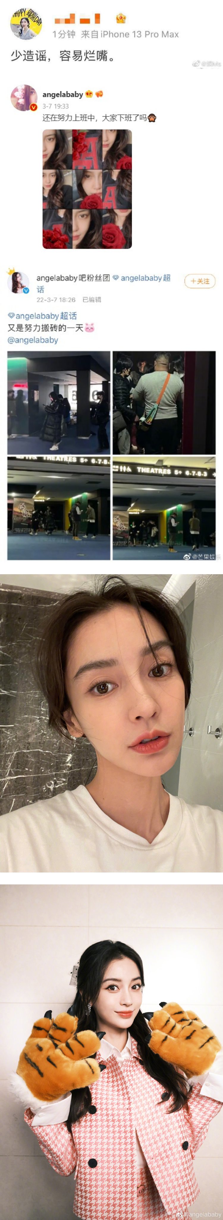 Angelababy幽会富商的消息传出后立刻掀起热议,助理随后在微博发文,怒斥:“少造谣,容易烂嘴”,而Angelababy本人更在7日晚上在微博晒出自拍照,写道:“还在努力上班中,大家下班了吗?”辟谣被隔离的消息。粉丝也公开到剧组探班的照片,澄清Angelababy正在剧组拍摄。