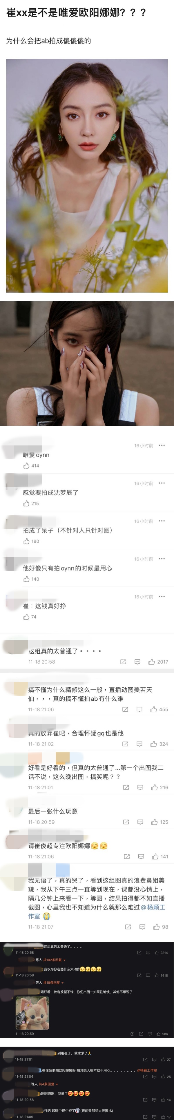 而摄影师崔俊超则被质疑“偏爱”欧阳娜娜,帮对方拍摄时才用心,掀起热议。