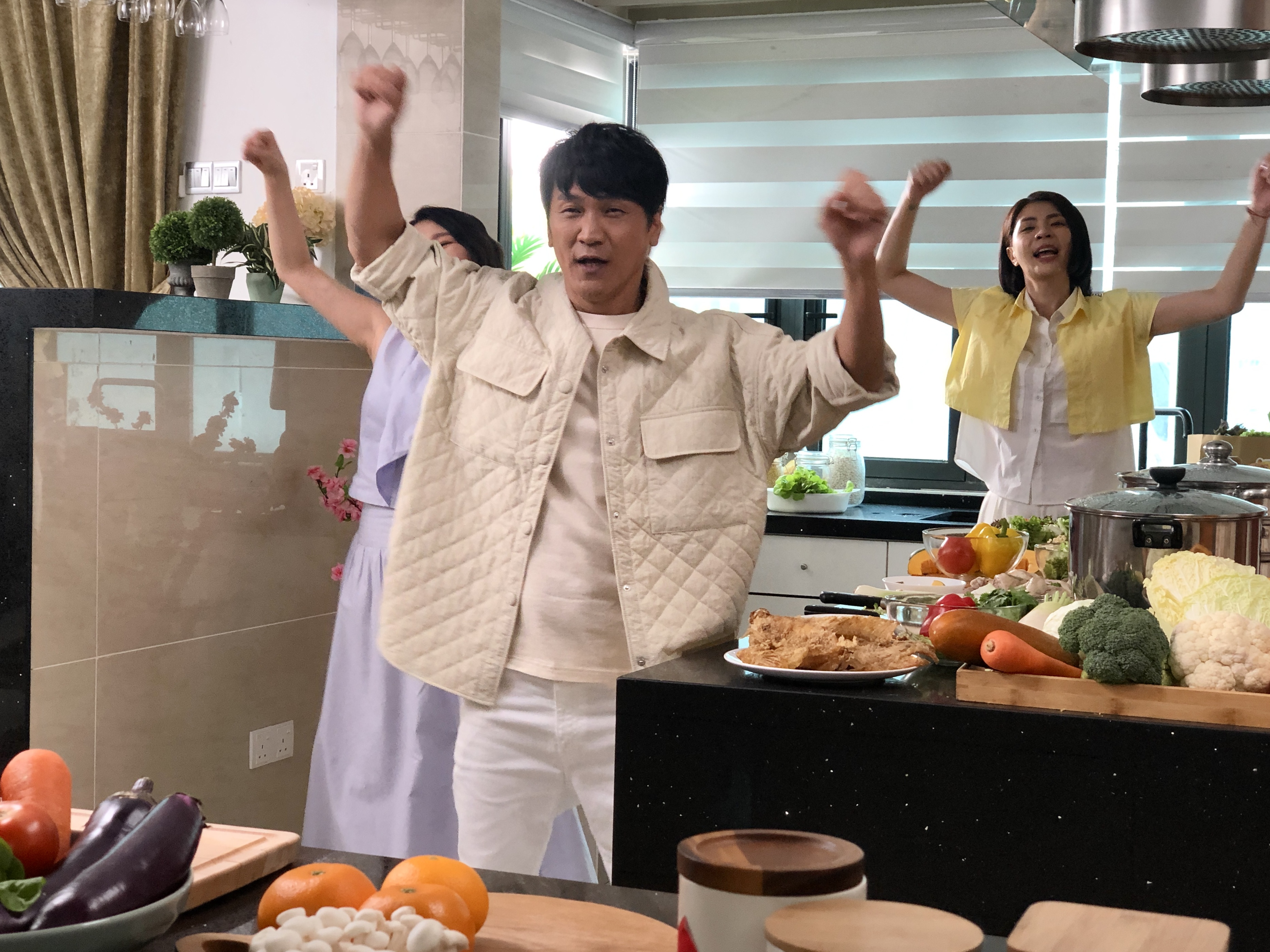舞步再简单也还是会有人频频NG 跳错,往年都被喻为‘老鼠屎’的 MY DJ Emely潘毖伶高兴的说,“今天拍摄《Ü虎加把劲》的NG王,终于都由薇芝来担当了。”原来她在疫情时期,偷偷的去拜师学了两年舞蹈,所以今天记舞步时可谓得心应手。
