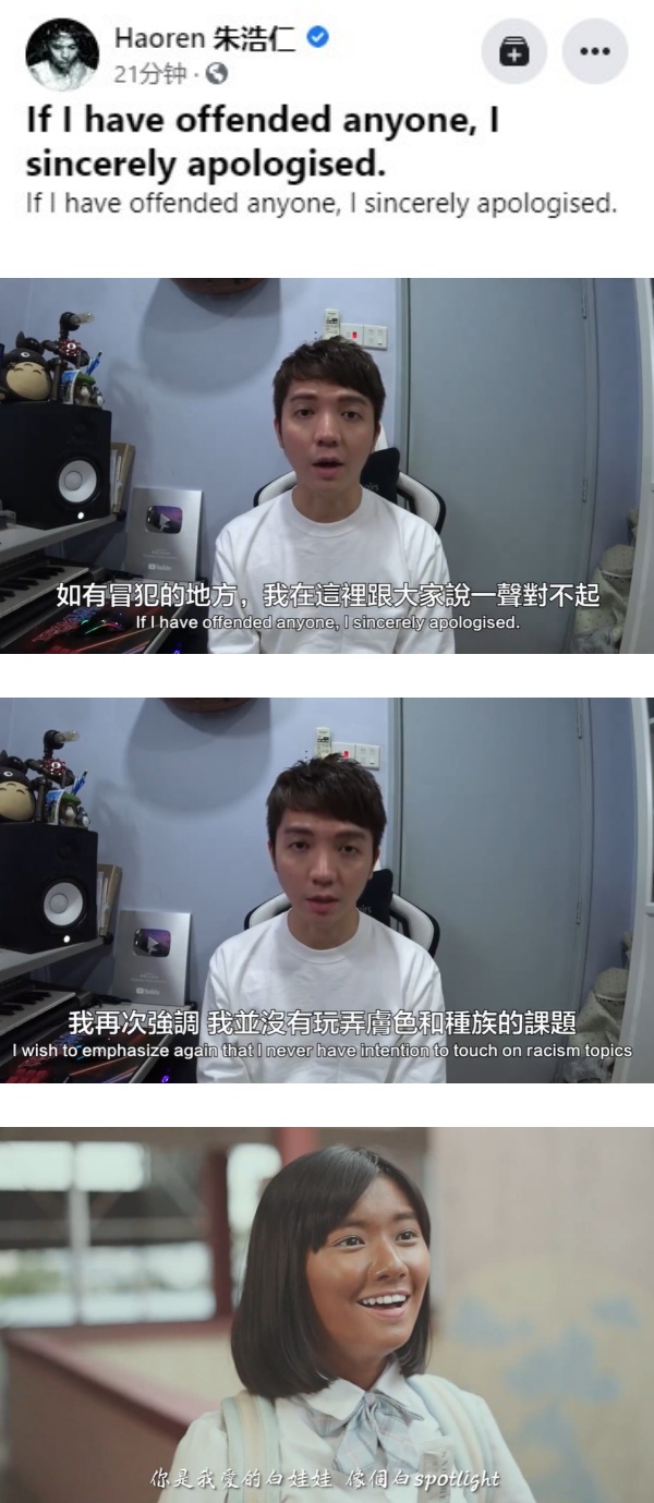 《白娃娃》风波闹大后,MV已经被下架,MV导演和演唱者朱浩仁也先后在社交媒体上发文和发布视频致歉,他一再强调自己并没有要玩弄种族、歧视。