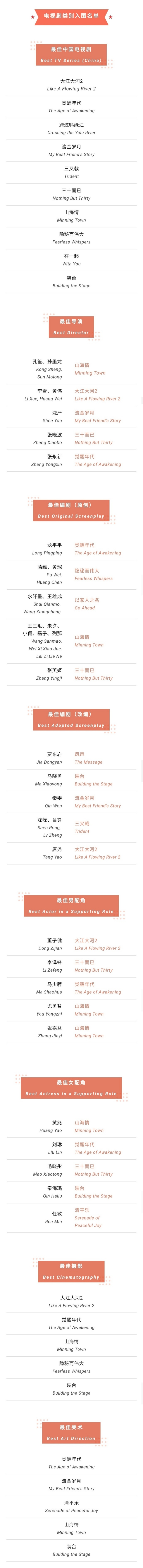 据悉,第27届上海电视节白玉兰奖将于6月10日举办颁奖典礼。来看看全部入围名单吧