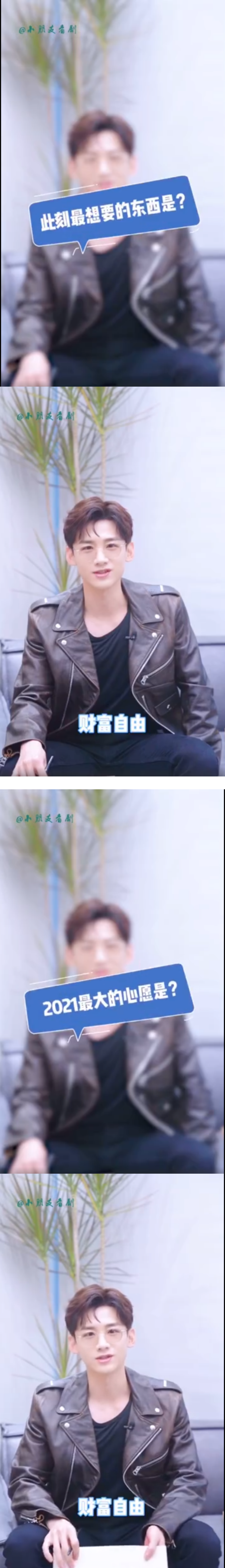 白敬亭近日在访问中,被问到“此刻最想要的东西是什么”、“2021最大的心愿是什么”时,都统一回答:“财富自由”,且表情非常认真。