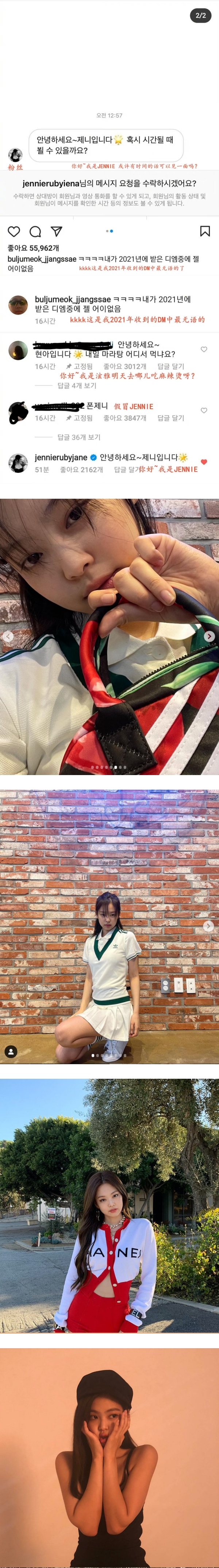 近日有韩国网友在Instagram 上公开了自己收到冒充BLACKPINK JENNIE 发出的的私讯,并表示这是她2021年收到最无语的私信,不料竟然钓出了真JENNIE 本尊,并留言:“你好,我是JENNIE !”