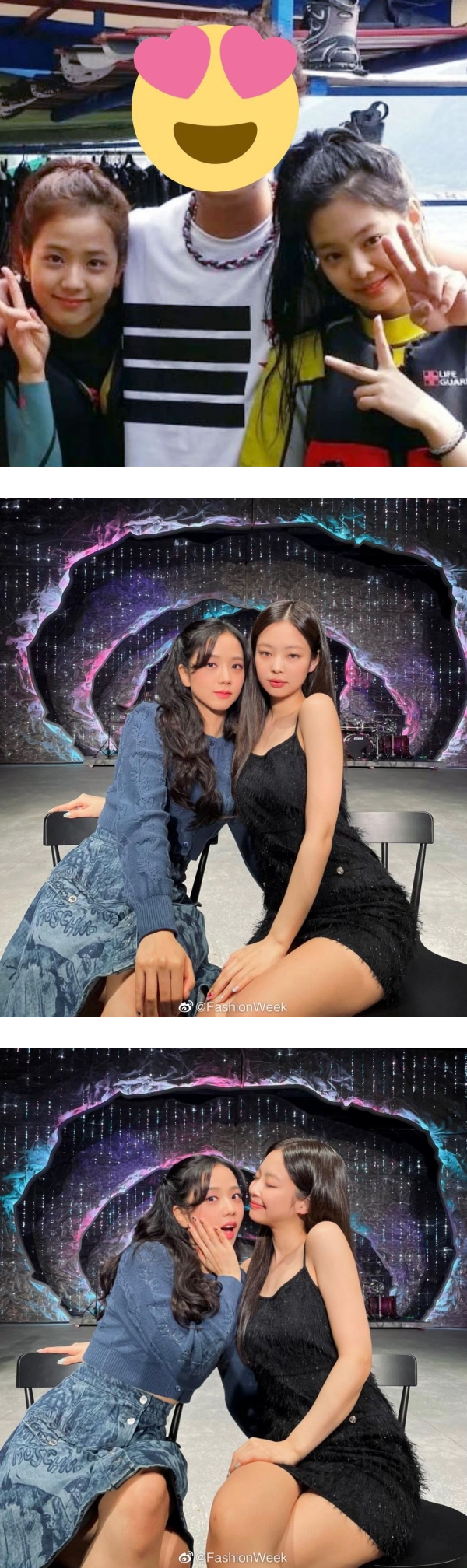 韩网上近日流传了一则名为:“今天新鲜出炉的JENNIE和JISOO 练习生新照片” , 并留言写道:“她们两人真的很可爱,哈哈哈哈哈” 。照片中可见两人一左一右的站在某个男生的隔壁,男生亲密的搭着两人的肩膀,三人的关系看起来相当不错。