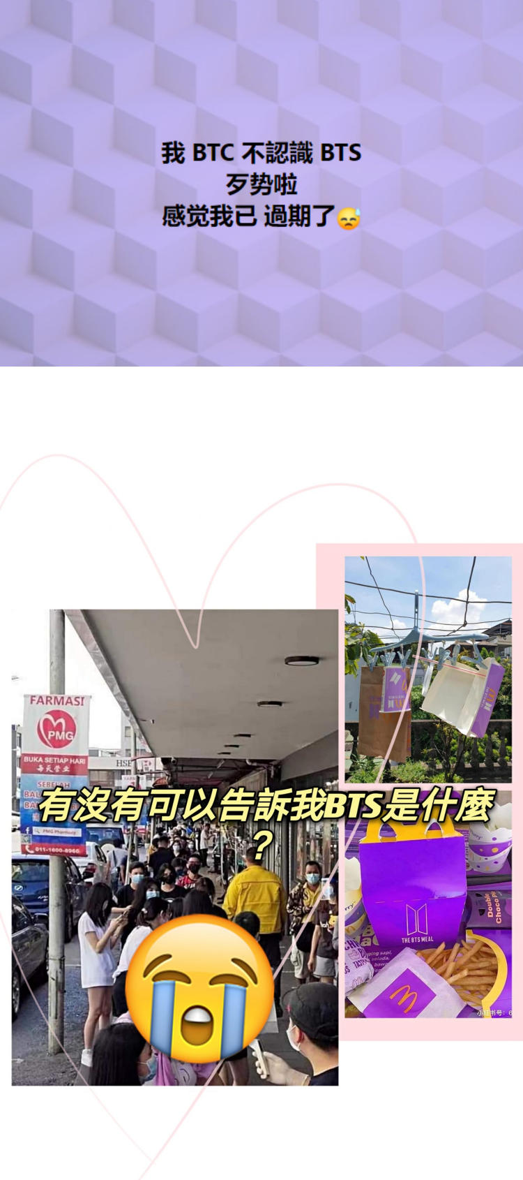 大马McDonald's于26日正式推出BTS套餐,掀起抢购潮。不过也有部分不熟悉韩国娱乐的网友在批评大班粉丝在疫情下仍排长龙抢购外,也有些疑惑,BTS究竟是谁?