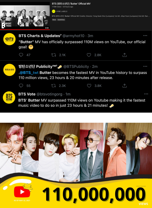 红遍全世界的韩国天团BTS 时隔半年终于推出了第二首英文单曲《Butter》,MV在YouTube上播出不满24小时就已经破亿点击率,再次刷新了自身记录!