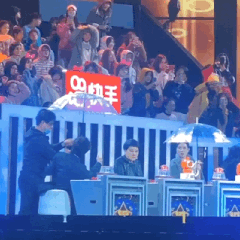 蔡徐坤昨天(19日)录制节目《我要上春晚》,没想到在录制中途突然下起了大雨,导致在户外的录制被迫暂停,工作人员也急忙上前送上雨伞。