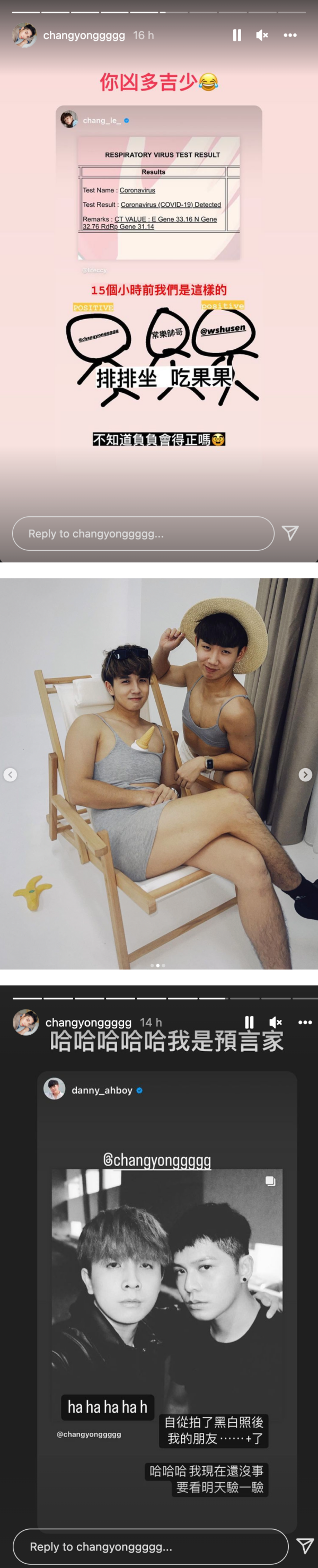 跟舒森、常勇、Michiyo何恋慈和常乐都有密切接触的Danny许佳麟则在留言区惊呼:“剩下我跟培永了”,舒森、常勇则写下:“记得念几张小房子 消除孽障”、“想不到你有红包了”,祝福他早日康复。