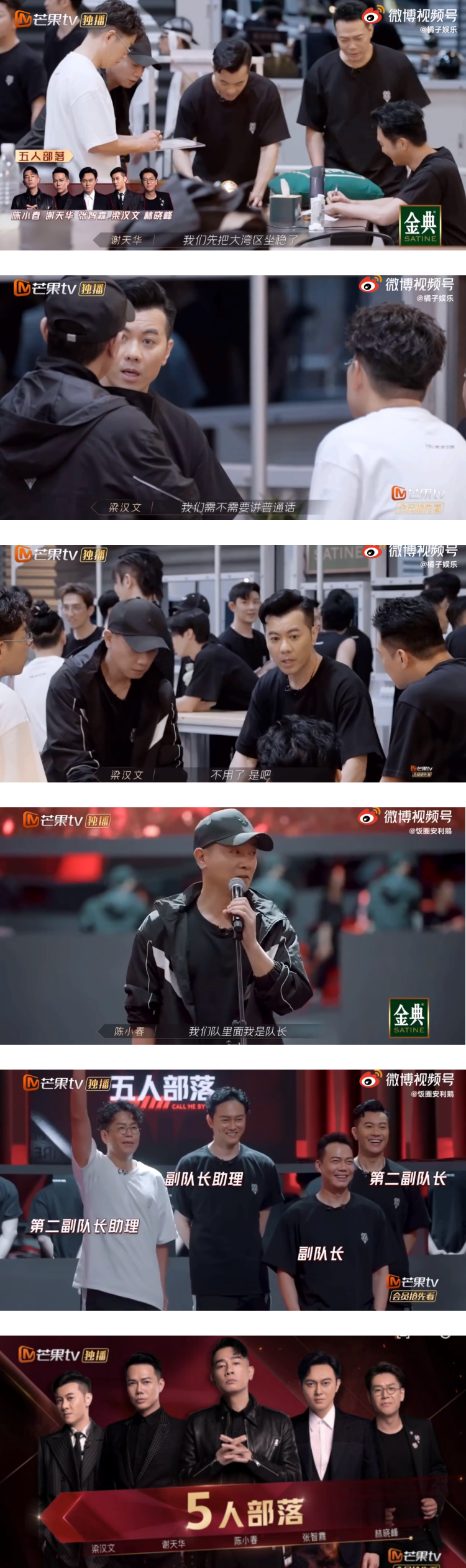 5人正式组队后,谢天华脱口说道:“我们先把大湾区坐稳”,而梁汉文也好奇表示:“我们五个人现在是不是需要讲国语(普通话)”,众人沉默3秒后,达成一致:“OK不用了”,画面非常搞笑。