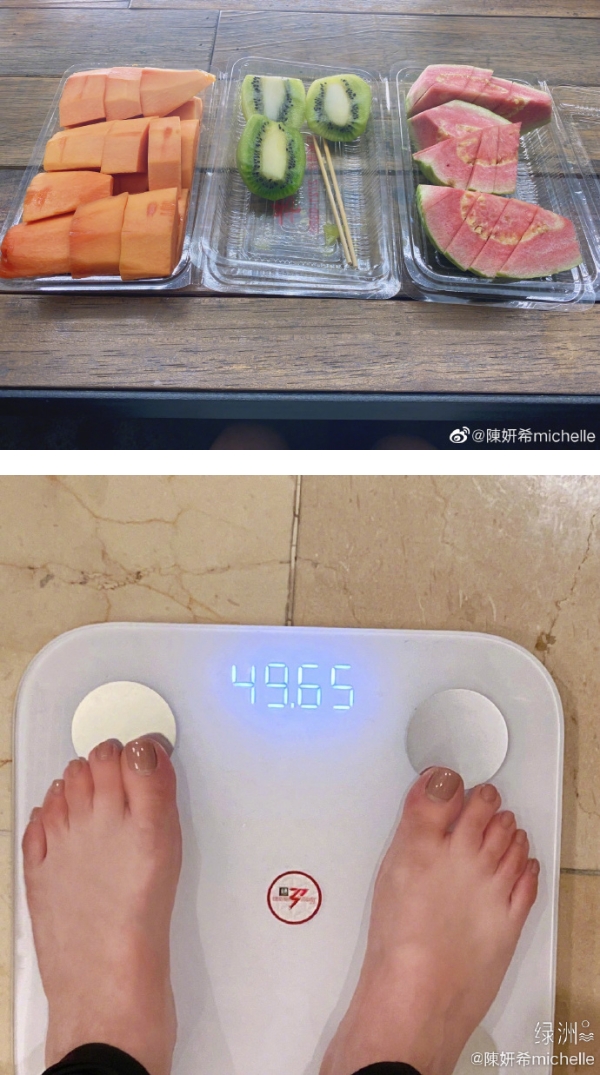 陈妍希11日于社交媒体上更新近况,并写下“今天是开工日”,并透露开工时不喜欢吃蛋白质相关的食物,因为会让她一直都想睡觉,所以水果餐就成了她的“开工主食”。她释出的水果餐包括一大盒木瓜、一颗半的奇异果再加上一颗红番石榴。