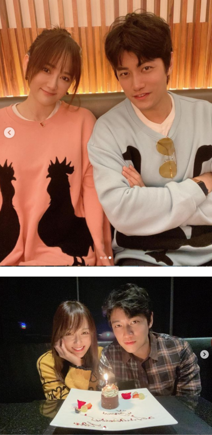 两人肩并肩合照,陈乔恩仅露出的眼睛部分笑得眯成了一条缝,看起来非常甜蜜、幸福。
