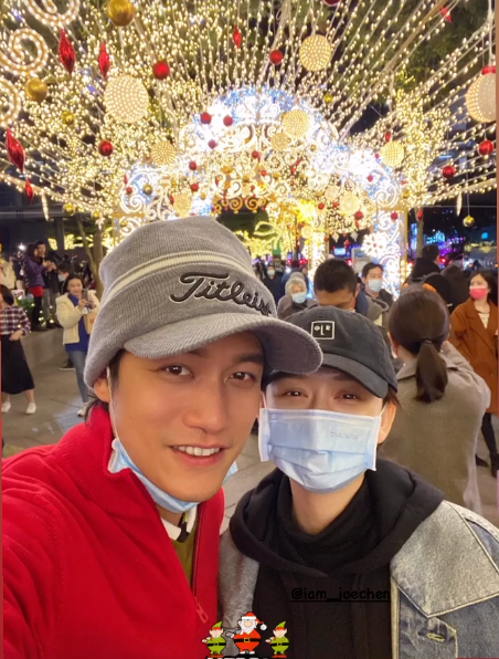 Alan昨天(26日)在IG story晒出与女友一起庆祝圣诞节的甜蜜合照。照片中,只见陈乔恩穿着黑色卫衣搭配牛仔外套,戴着口罩和帽子,捂得非常严实,而Alan则穿着红色外套,非常应节。