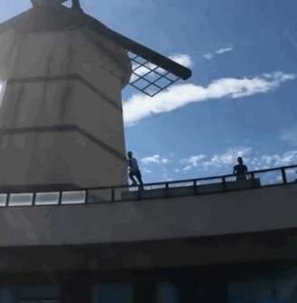 在《舒克与桃花》的第一集中,陈晓有一段从三层楼高的天台往下跳,其后落在充气垫上的情节,剧组昨天(5日)下午公开这段跳楼戏的花絮,原来他在拍摄时竟然没有吊威亚,瞬间吓坏不少粉丝。