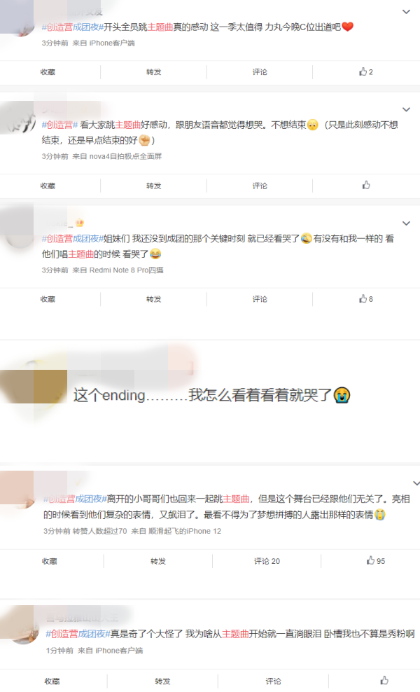 除了晋级的25位学员,其余被淘汰的学员也回归决赛夜。大家一起跳主题曲的画面,让网友看得热泪盈眶:“89个弟弟都在 好像大家都没离开过一样”、“太走心追选秀了,看他们跳主题曲都看哭了,这一季真的都太棒了”、“看大家跳主题曲好感动”。