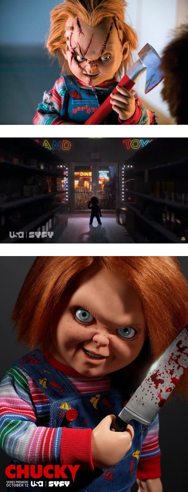 据报道,USA Network和Syfy在去年宣布将开拍电视剧版《Chucky》,但因为新冠肺炎疫情影响该剧延迟到今年才正式投入拍摄工作。近日,片方曝光了电视剧版《Chucky》前导预告和海报,同时公布影集将在10月12日上架。