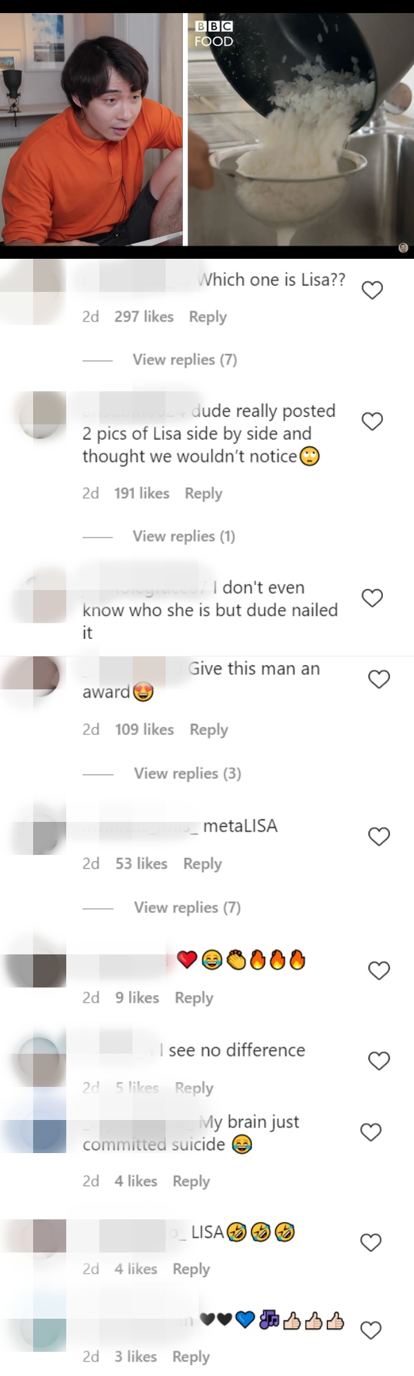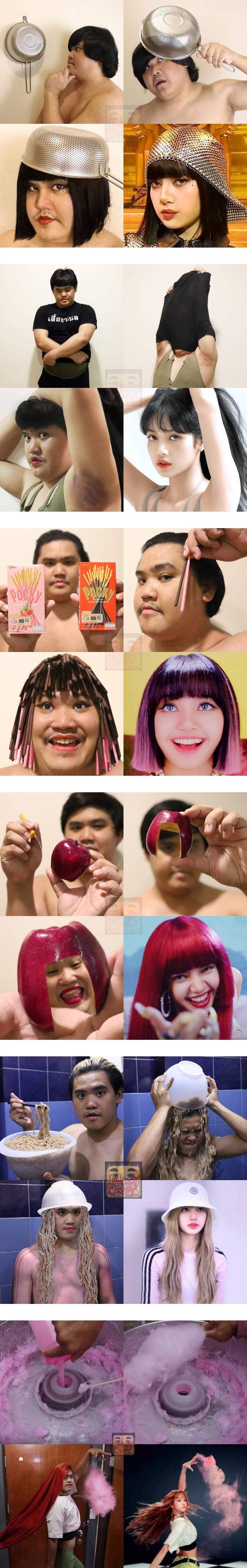 LISA这身造型曝光后,立即吸引到泰国低成本cosplay网红Anucha Sangchart的关注,他在社交媒体上释出以厨房器具沥水网套在头上,再加上LISA的招牌娃娃头和妆容,廉价cosplay版的LISA随即诞生。