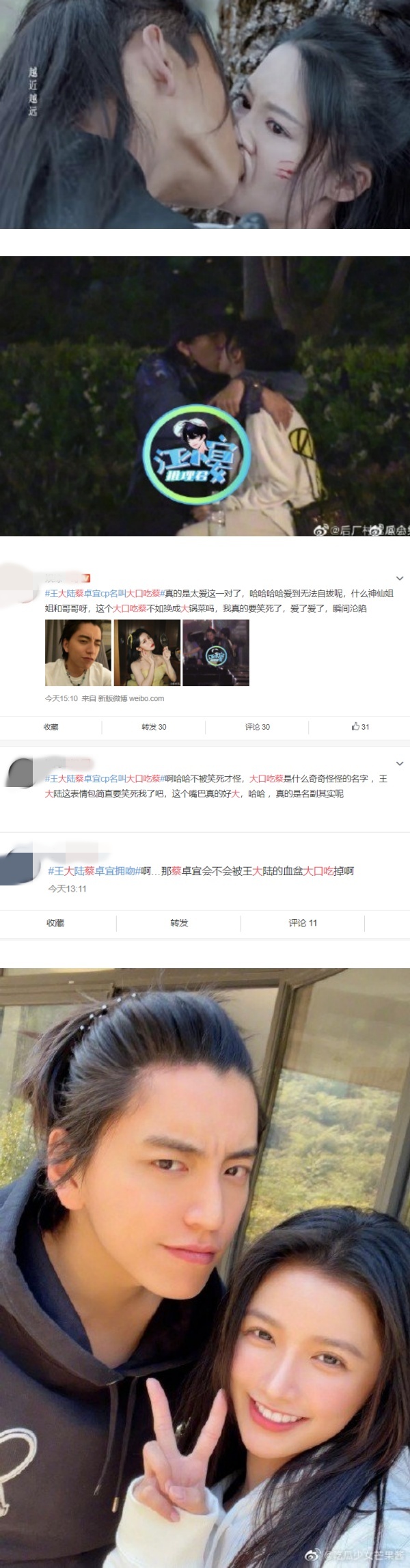随着王大陆和蔡卓宜的拥吻照曝光,他在《狼殿下》中把李沁的嘴吻到变形的剧照也被翻出来!网友调侃:“蔡卓宜会不会被王大陆的血盆大口吃掉啊”、“这个大口吃蔡不如换成大锅菜吗”、“林子里的笋都被夺完了”。