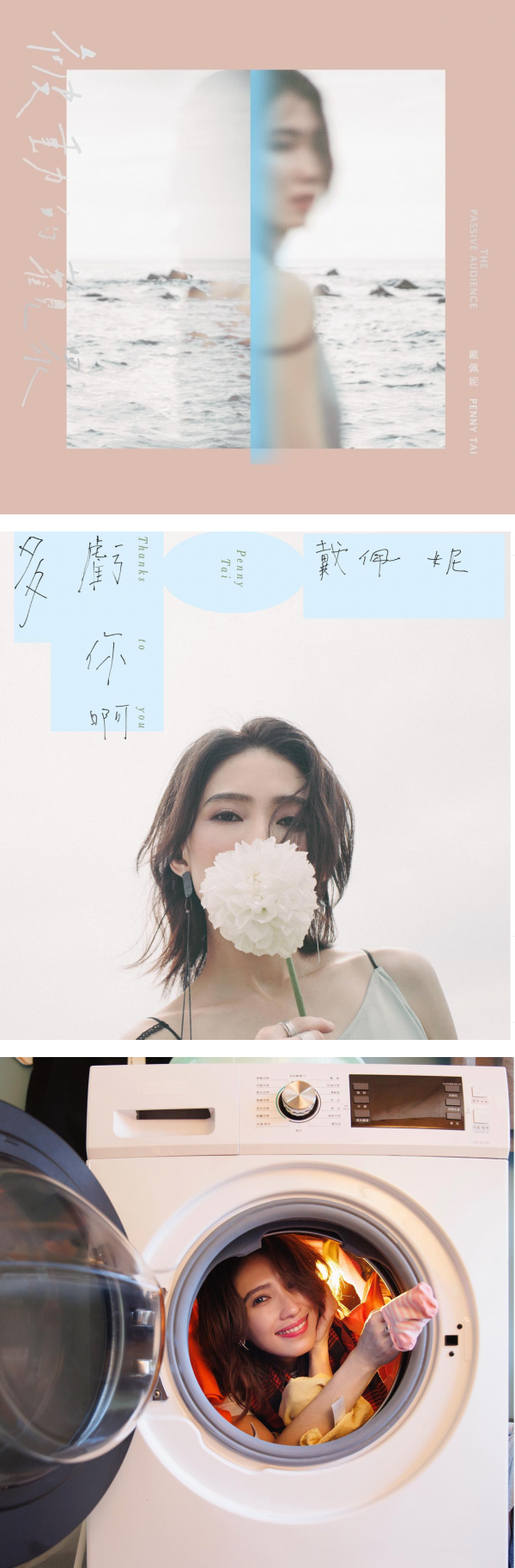 本身也身兼MV导演身份的戴佩妮,在《被动的观众》专辑中初次与国际知名女导演洪诗婷合作,双方一拍即合,不仅导演本身就是Penny的歌迷,Penny也相当欣赏导演的拍摄视角、手法与调性,两位才女惺惺相惜,讨论三首歌曲《多亏你啊》、《被动的观众》和《闹剧》的拍摄内容时,双方非常热络,以奇幻风格见长的导演,与Penny讨论下,提出了源源不绝、令人意想不到的点子,对于各项细节的沟通也相当仔细。而同时身兼造型师的Penny,对于导演希望达到的服装需求,无论是搭配、缝制或是机关制作都亲力亲为,投入了非常多的心力,两位女性艺术家共创激起了无限大的火花!