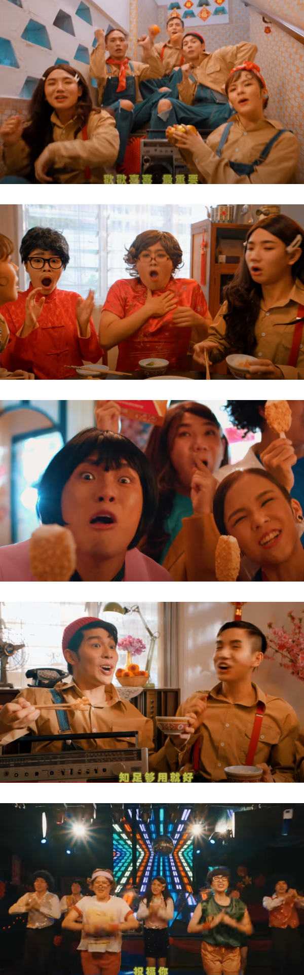 《开开心心最重要》MV中走复古风,只见5人换上衬衫搭配牛仔裤、旗袍、Disco风衣服等,再搭配上发型和妆容,感觉复古味十足!