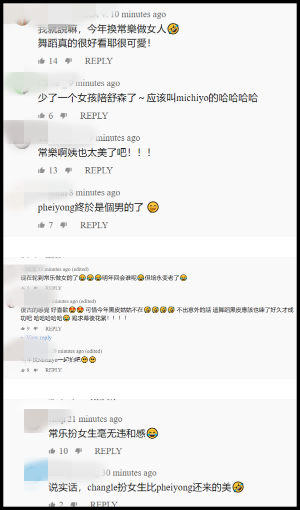 另外,常乐还戴了长发假扮女生,被网友大赞比培永还美:“常乐阿姨也太美了吧”、“培永终于不当女生了”、“常乐扮女生毫无违和感”、“所以常乐是姑姑的孙女吗?”