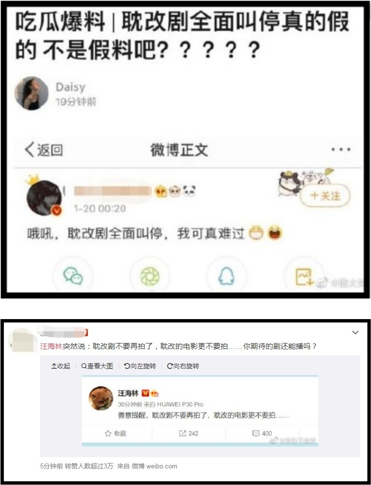 没想到,微博日前就疯传“耽改剧全面叫停”的传言,引起不少揣测。而资深编剧汪海林昨晚(21日)就在微博发文:“善意提醒,耽改剧不要再拍了,耽改的电影更不要拍”。
