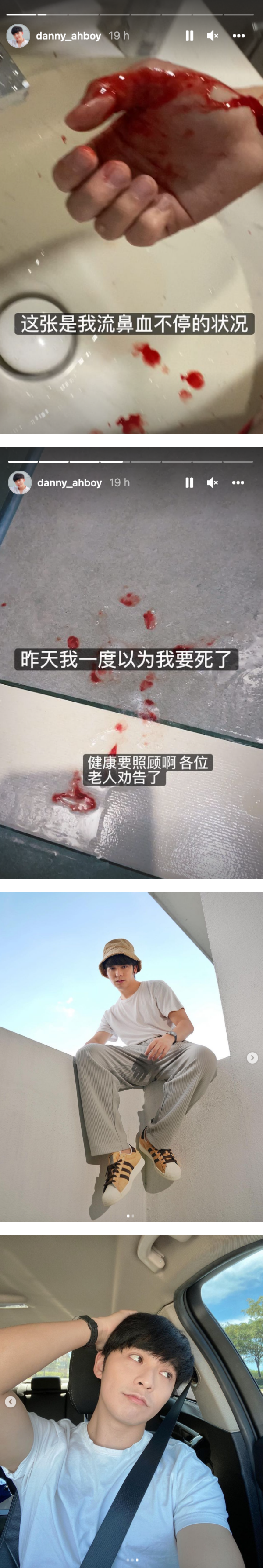本地艺人、YouTuber Danny许佳麟5日在Instagram Story上分享了自己因工作熬出病的恐怖经历,只见他的鼻血一度血流不止,直呼自己差点要死了。