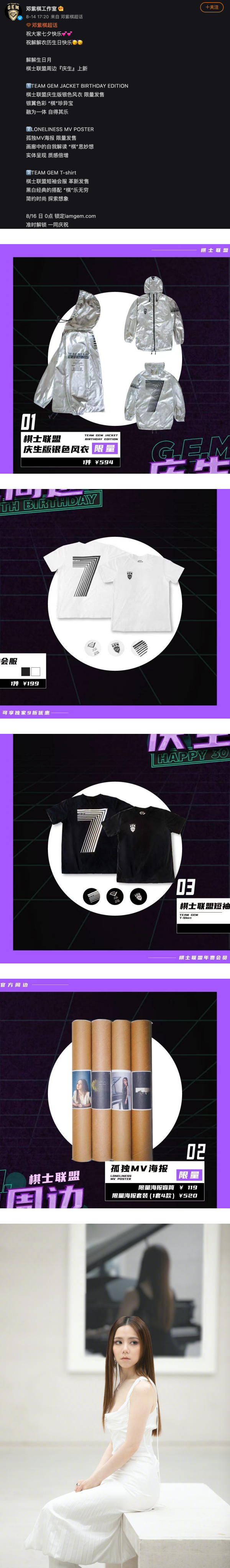 有着“巨肺天后”之称的香港歌手邓紫棋(G.E.M) 以高亢的歌声及惊人的创作力吸引了大批歌迷追捧。今天(16日)她年满30岁,工作室为了替她庆生,推出了包括风衣、T恤和一组海报,但由于海报的售价过高引起了中国粉丝们气得在工作室微博底下狂骂。