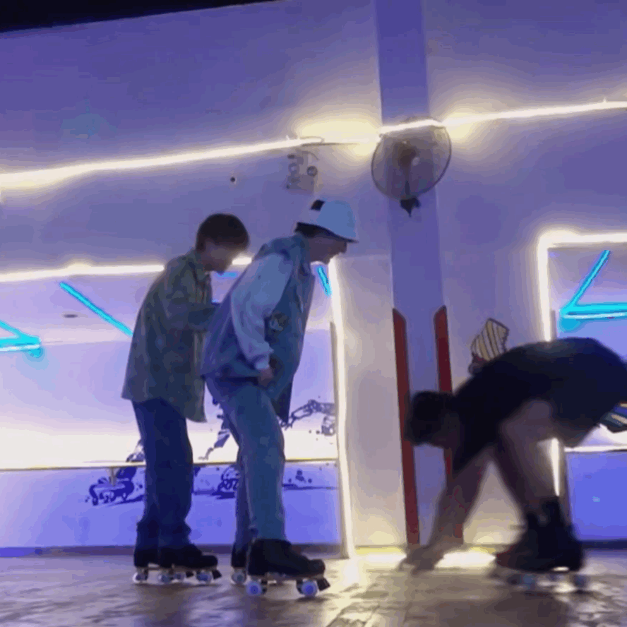 在最新一期节目中,一众嘉宾体验室内溜冰,邓超提议玩穿越障碍物的游戏,张开大腿形成拱门形状,让大家蹲着从下方溜过去。