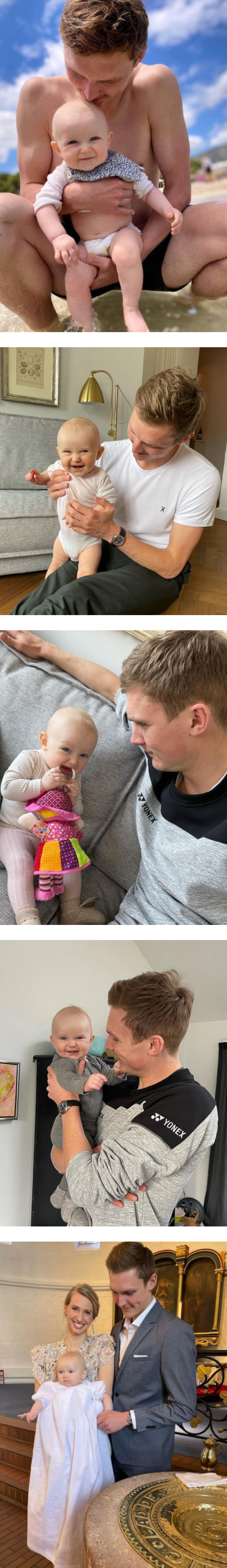 现年27岁的安赛龙已经名草有主,小一岁的女友Natalia Koch Rohde也是前国手。两人在2011年相恋,2020年生下女儿Vega Rohde Axelsen(中文名安维佳)。安赛龙经常在社交网晒出和女儿的互动,网友都被小婴儿萌化,认为她长得非常像爸爸!
