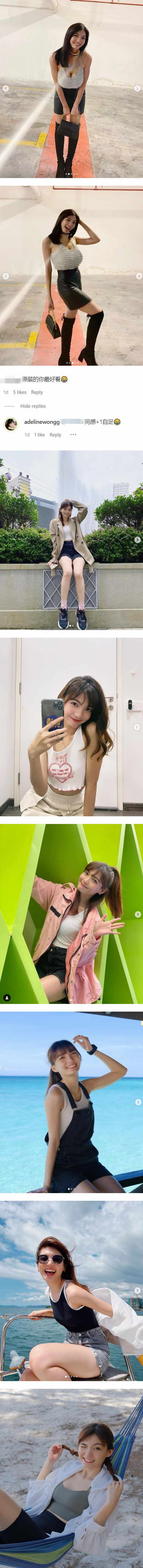 Adeline突然暴涨的胸围一度让粉丝误以为她做了隆胸手术,但其实仔细看照片后会发现她是穿着“假胸衣”,肩膀与脖子能明显看到“假胸衣”的痕迹,让粉丝都放心了,并纷纷调侃:“原装的比较好看”、“突然觉得小有小的好”、“原裝的你最好看”、“不要玩,还是原装的你好看哦”。